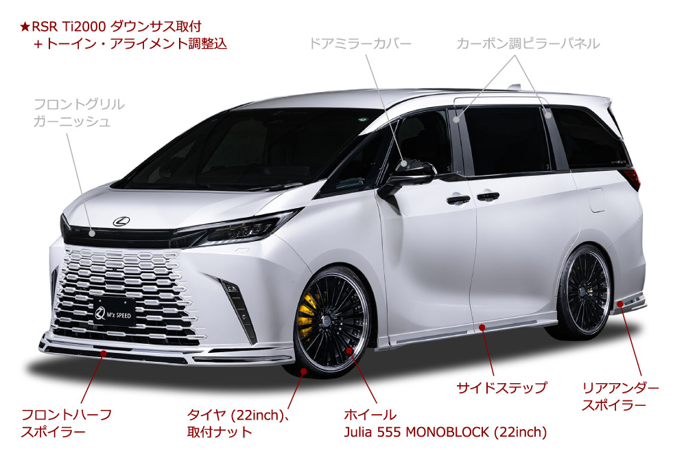 エアロバージョンと比較して下記装備がお得 RSR Ti2000 ダウンサス Julia555モノブロック 22インチ