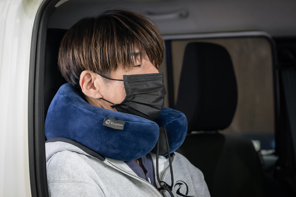 長距離ドライブや休憩時のおともに。 首元に優しくフィットする立体設計のオリジナルネックピロー。走行中の振動や姿勢の崩れをサポートし、首や肩への負担を軽減。シンプルなデザインに、M’z SPEEDのロゴをさりげなくあしらった、見た目にもスマートなアイテムです。
