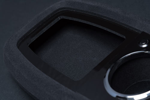 トレイは内側もスエード調。開口周囲はアクリルプレート。